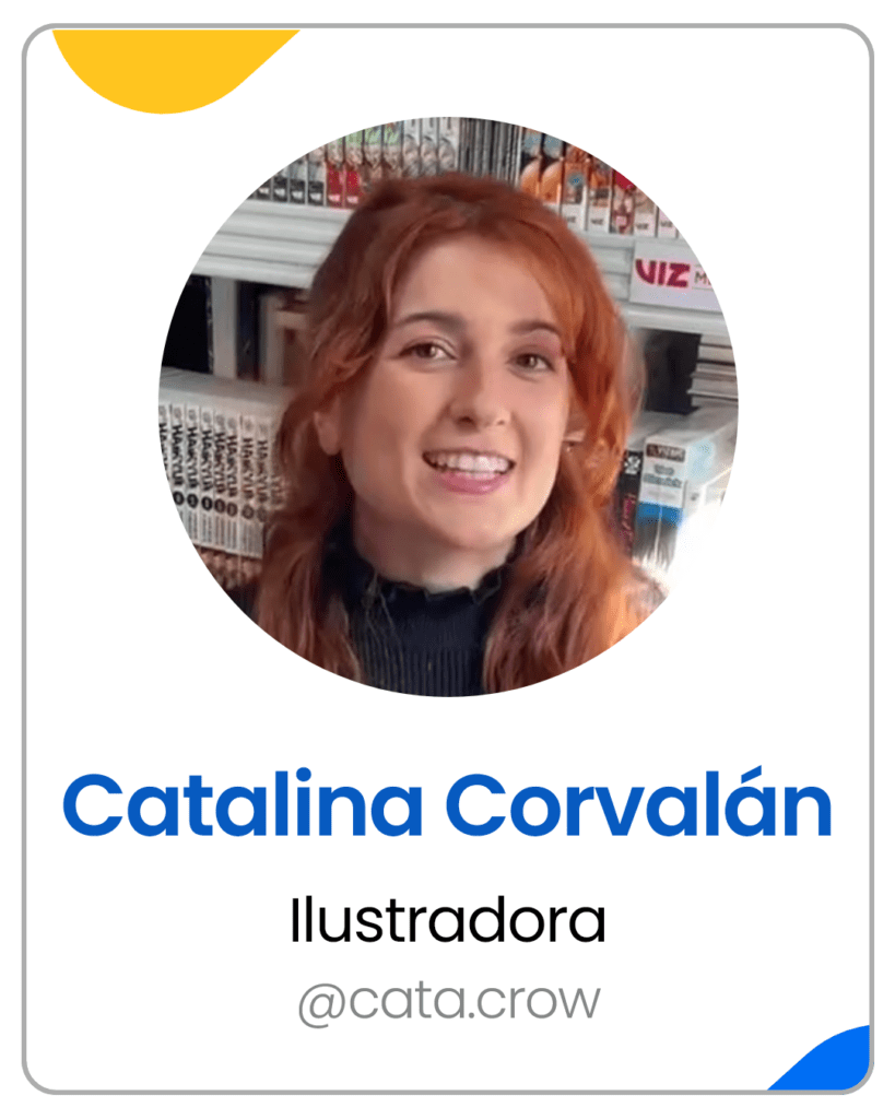 | 11:00 - 11:45 | Diseño de personajes | Catalina Corvalán | Ilustradora - Cata Crow | Estudiantes aprenderán los elementos del cómic y cómo narrar visualmente. | 10 a 17 años |